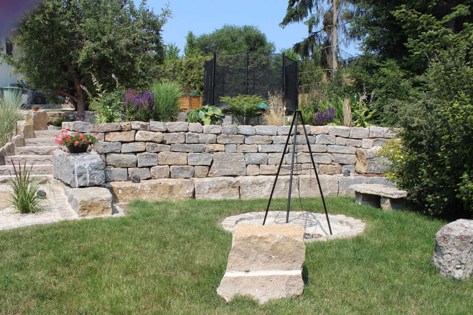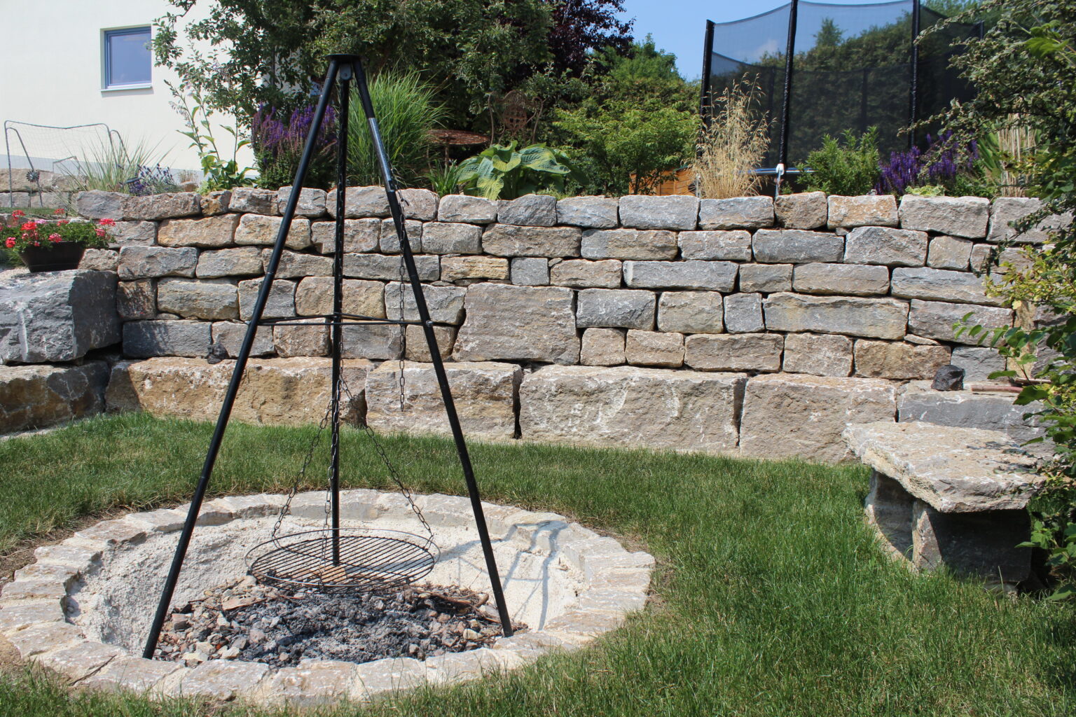 Mit einem Muschelkalkkleinstein wurde eine Feuerstelle geschaffen.