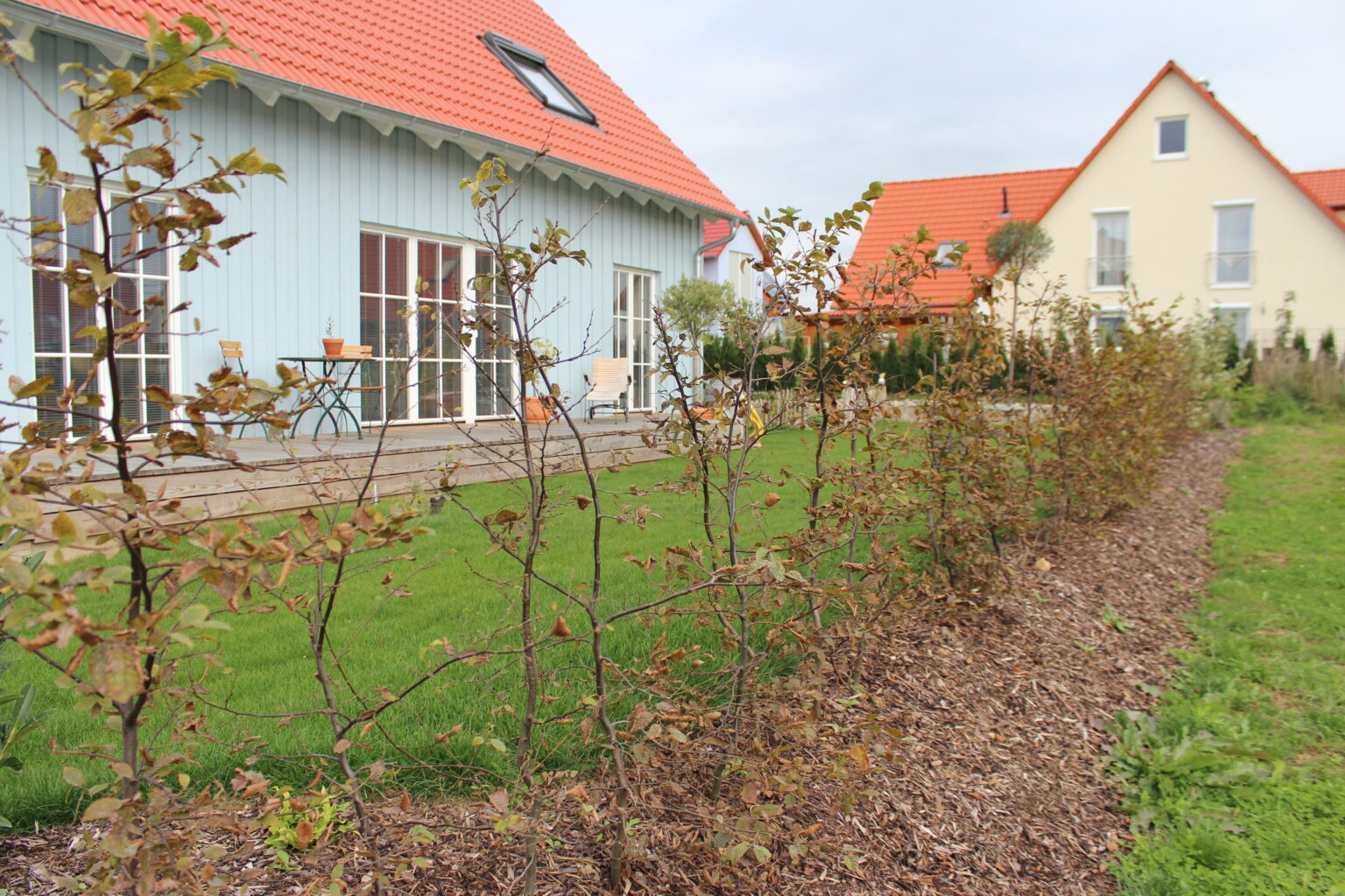 Zur optimalen Rasenansaat gehörte hier auch unsere mobile Beregnungsanlage. Somit wurde der Rasen und die frisch angepflanzten Sträucher perfekt versorgt.
