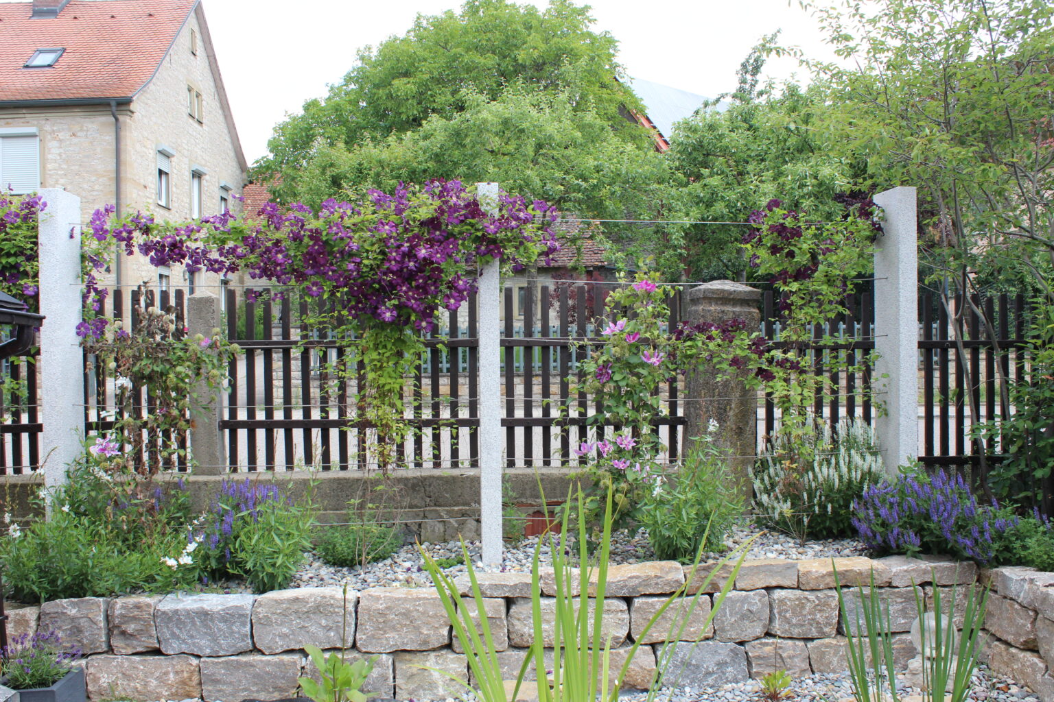Um den Höhenunterschied auszugleichen wurde eine kleine Natursteinmauer gebaut.