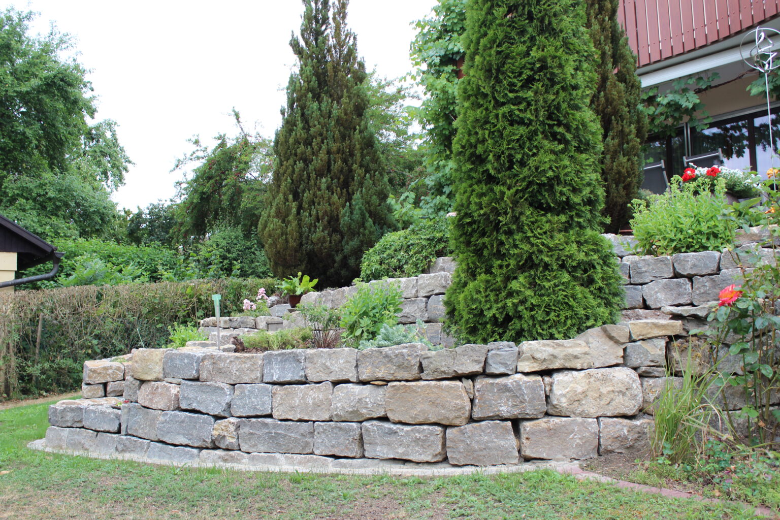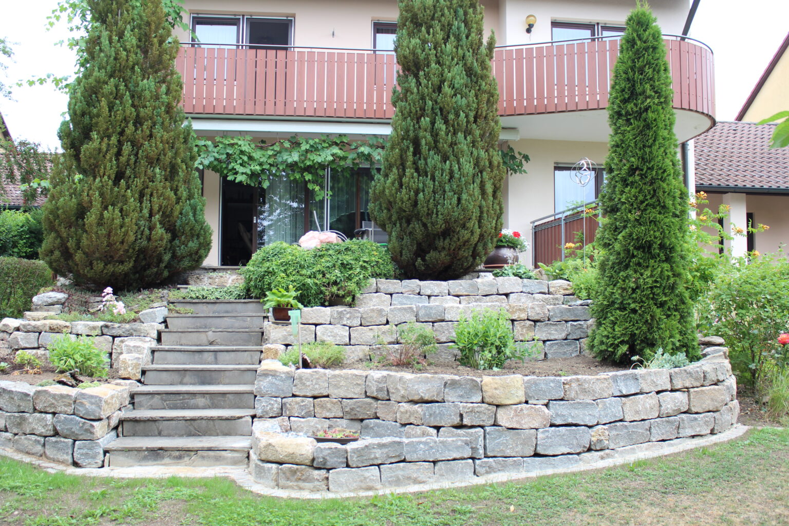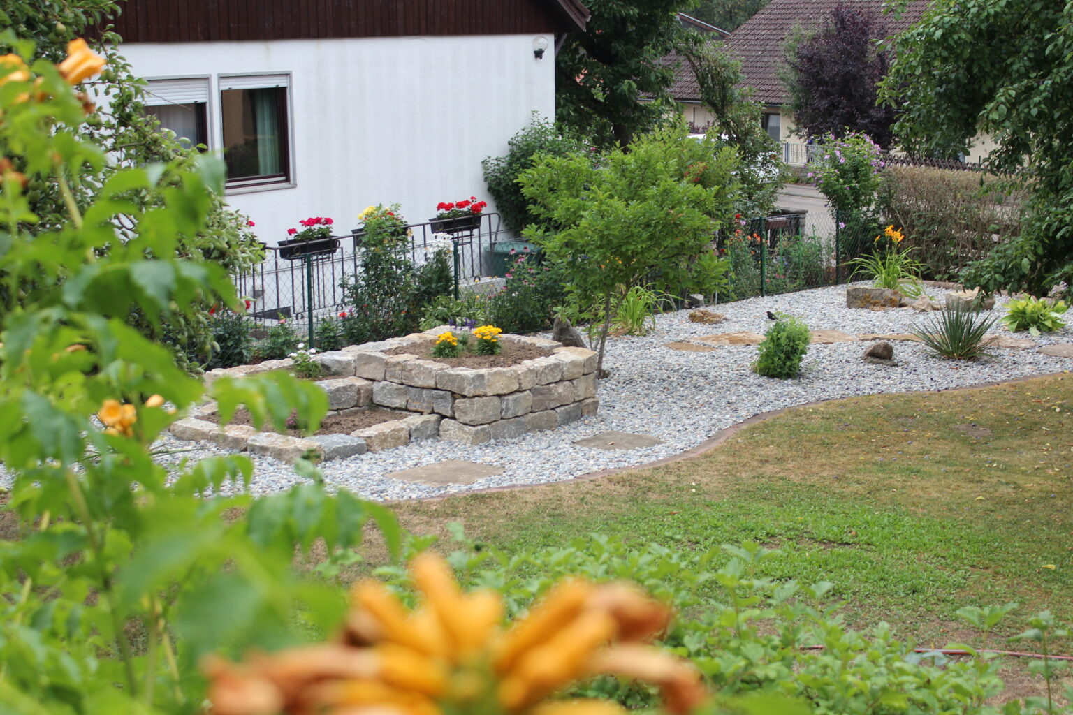 Um die Terrasse wurde der Hang mit Muschelkalkmauern abgefangen und mit Pflanzbeeten versehen.