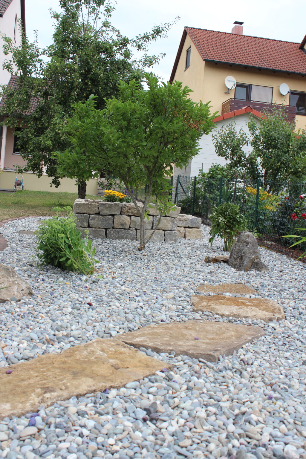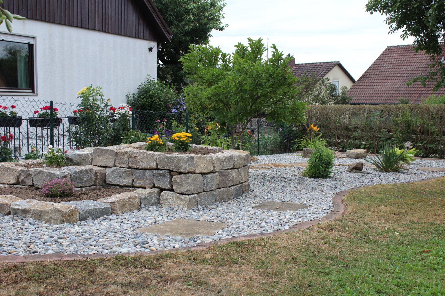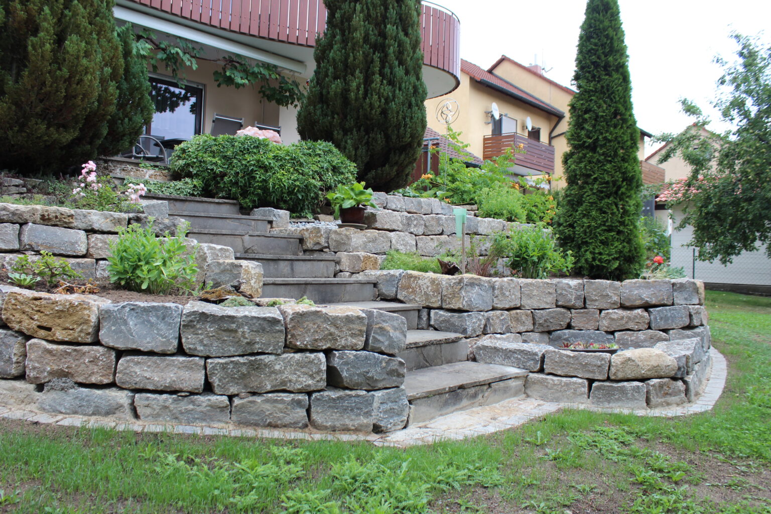 Um die Terrasse wurde der Hang mit Muschelkalkmauern abgefangen und mit Pflanzbeeten versehen.