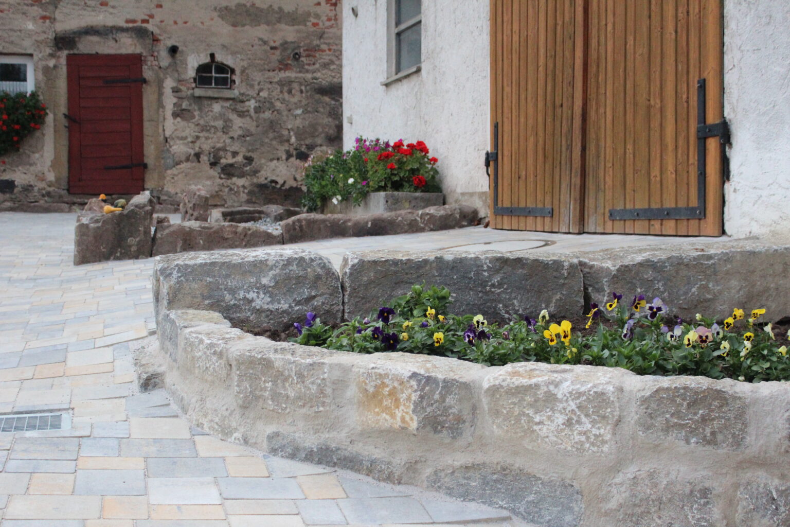 Hier wurde eine Hofeinfahrt mit kleineren Pflanzbeeten angelegt.