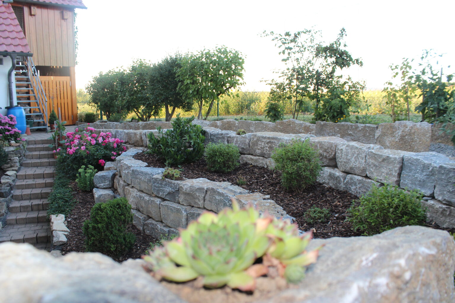Mit mehreren Natursteinmauern wurde hier der Hang abgefangen.