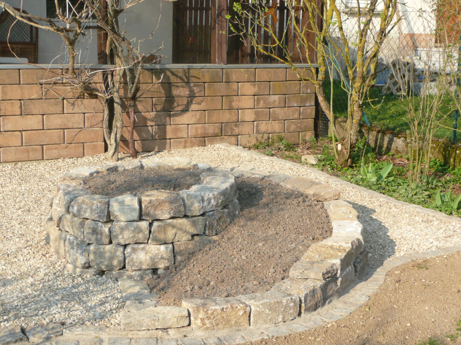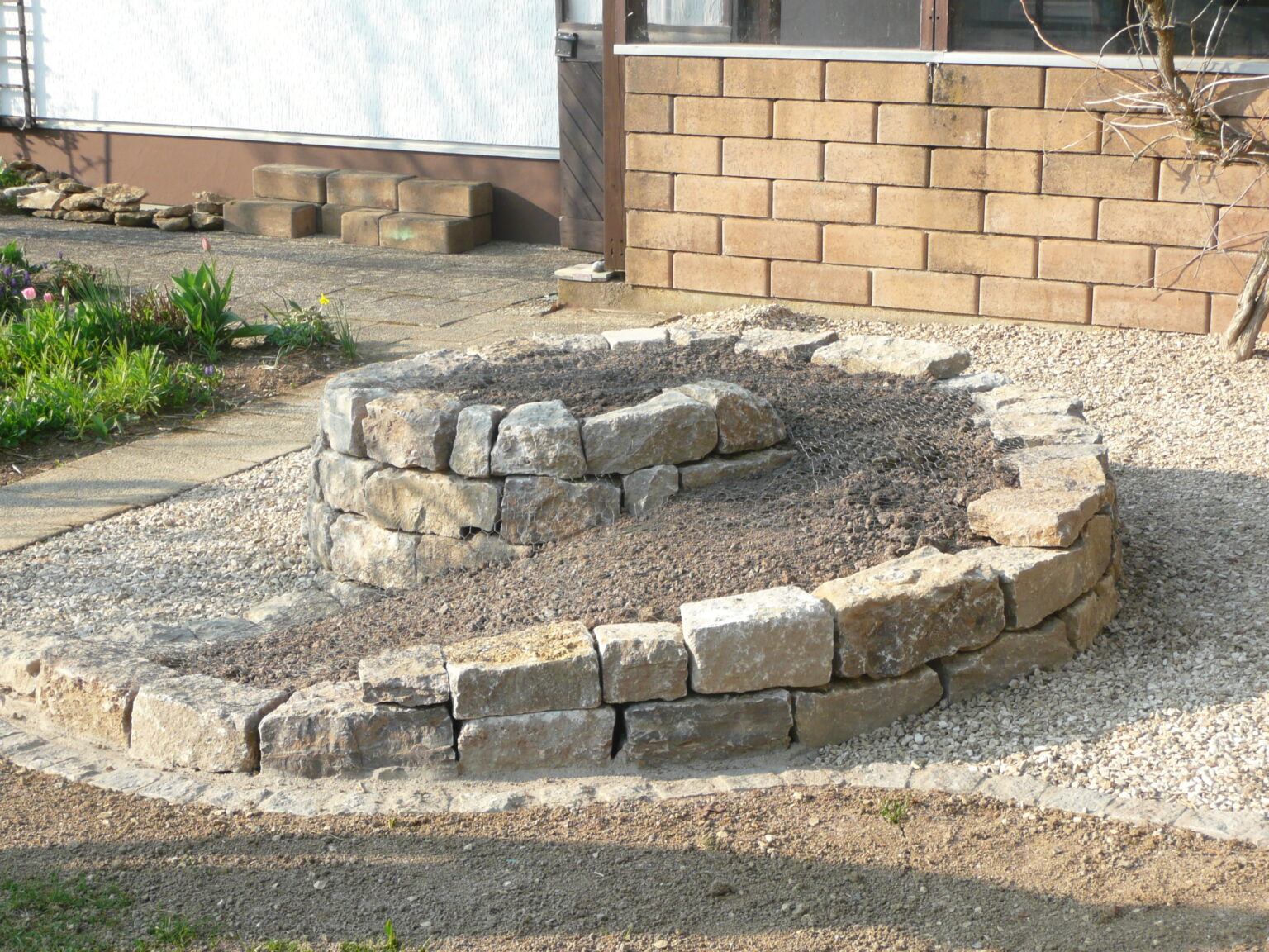 Mit Muschelkalksteinen wurde hier eine Kräuterschnecke gebaut.