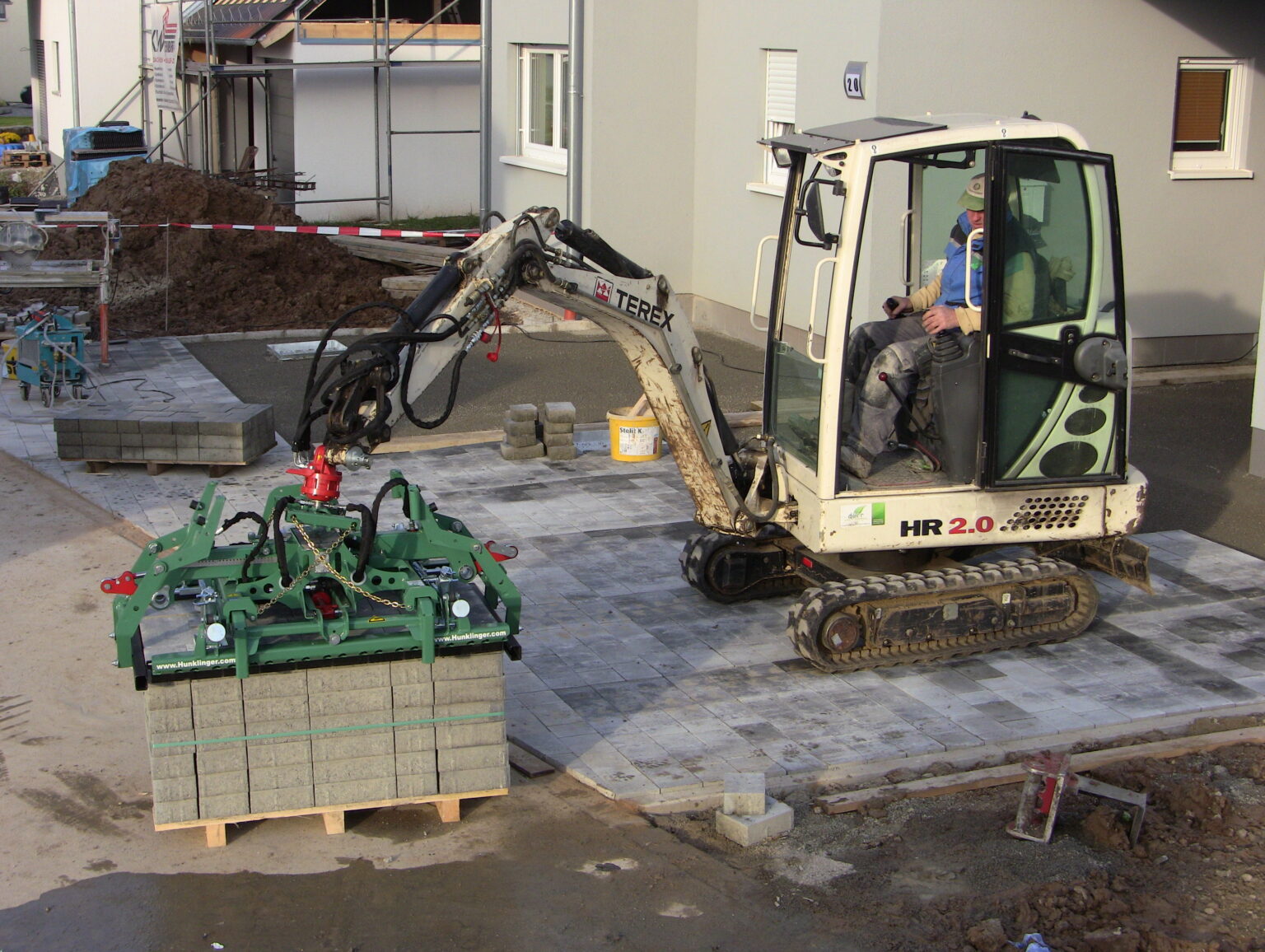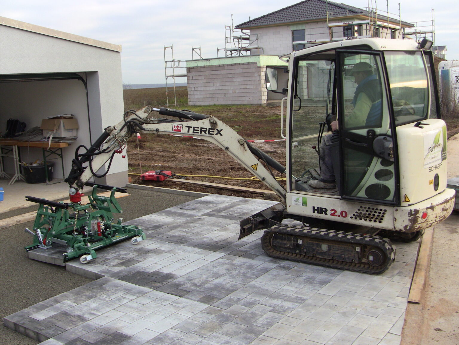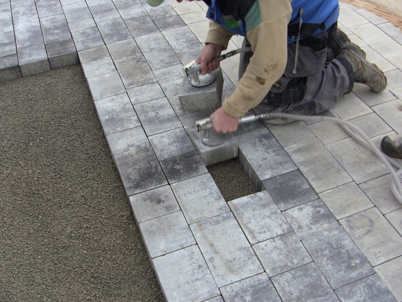 Wenn es das Pflaster und die Verlegeart hergibt, verlegen wir unser Pflaster auch sehr gerne mit der Pflasterzange. Super effektiv und natürlich eine große Zeitersparnis auf der Baustelle.