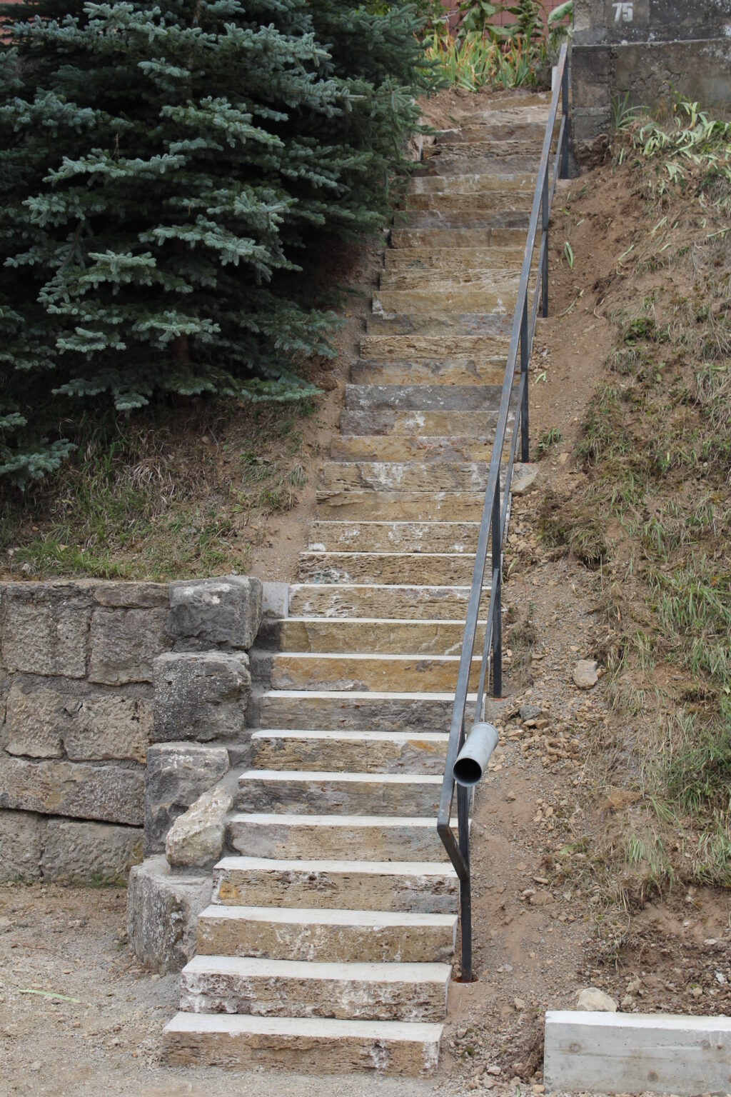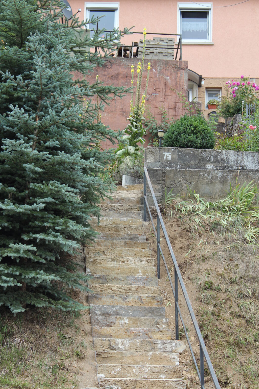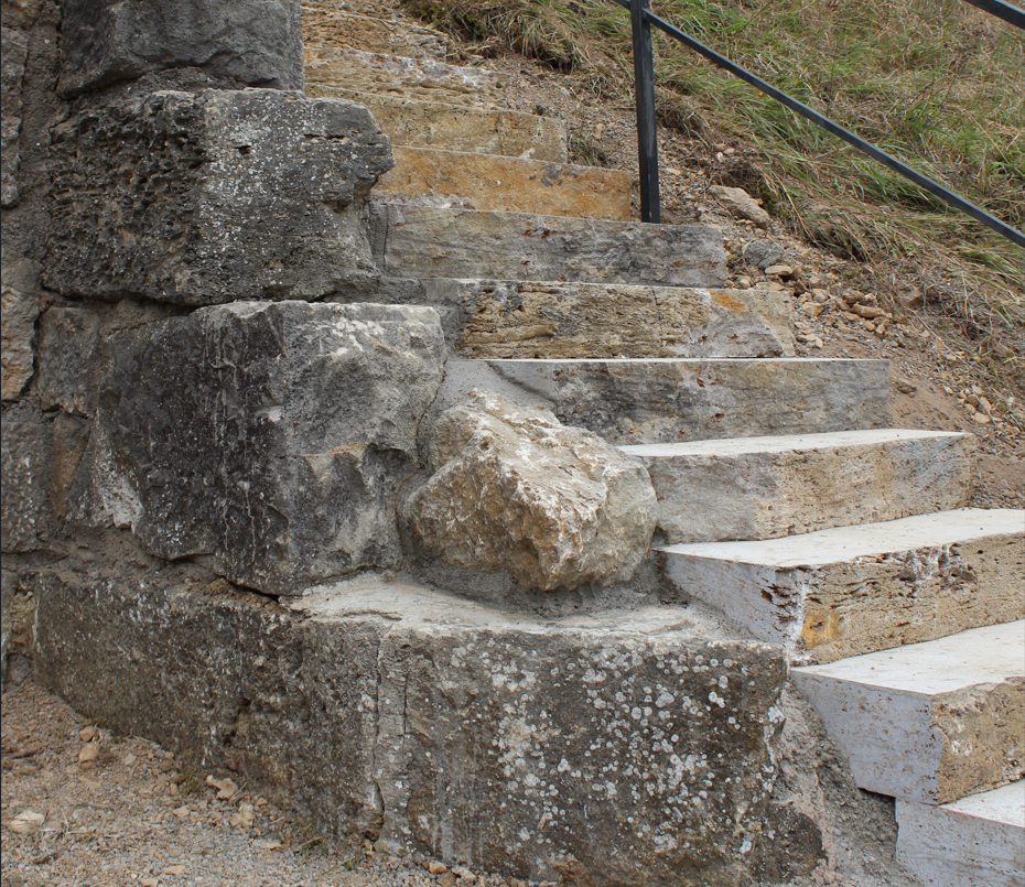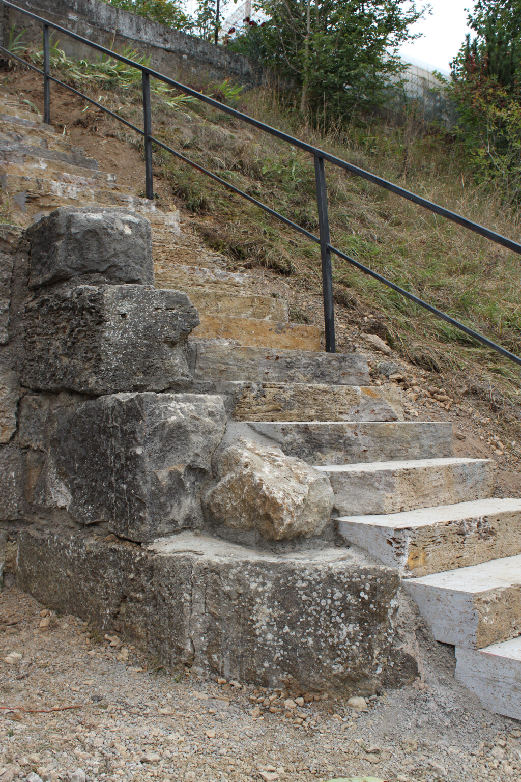 Mit einer Treppe kommt man hoch hinaus. Mit Muschelkalkstufen wurde hier eine schöne Möglichkeit geschaffen um den Hang hinaufzukommen.