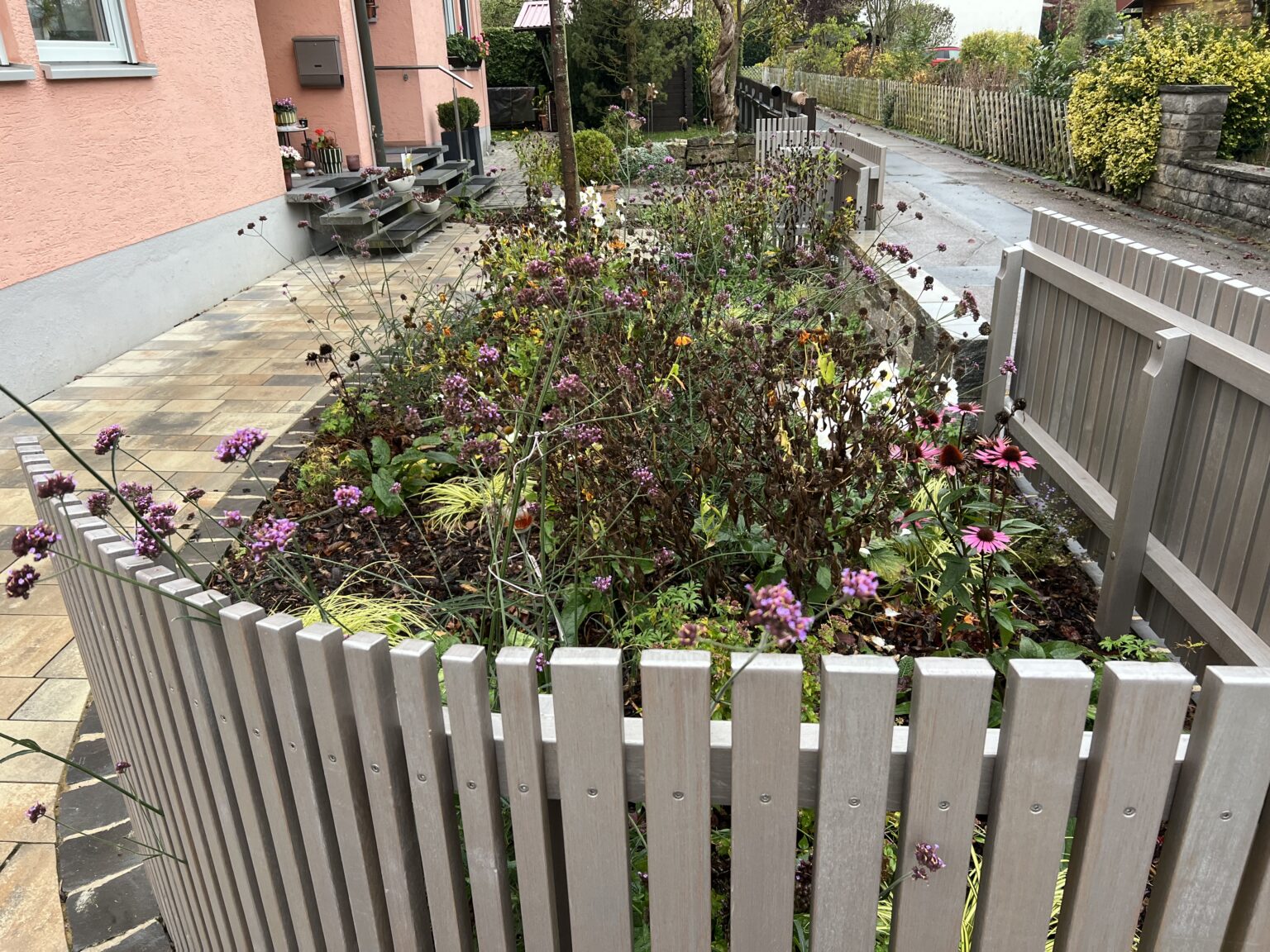 Perfekt in Szene gesetzt wurde hier ein Vorgarten mit einer Kombination von Gärtner und Schreiner. Durch unsere Natursteinmauer wurde der Gartenzaun unterbrochen und doch beides optisch miteinander verbunden. Eine Vielfalt von verschienden Stauden wurde gewünscht um eine schöne Natur widerzuspiegeln.
